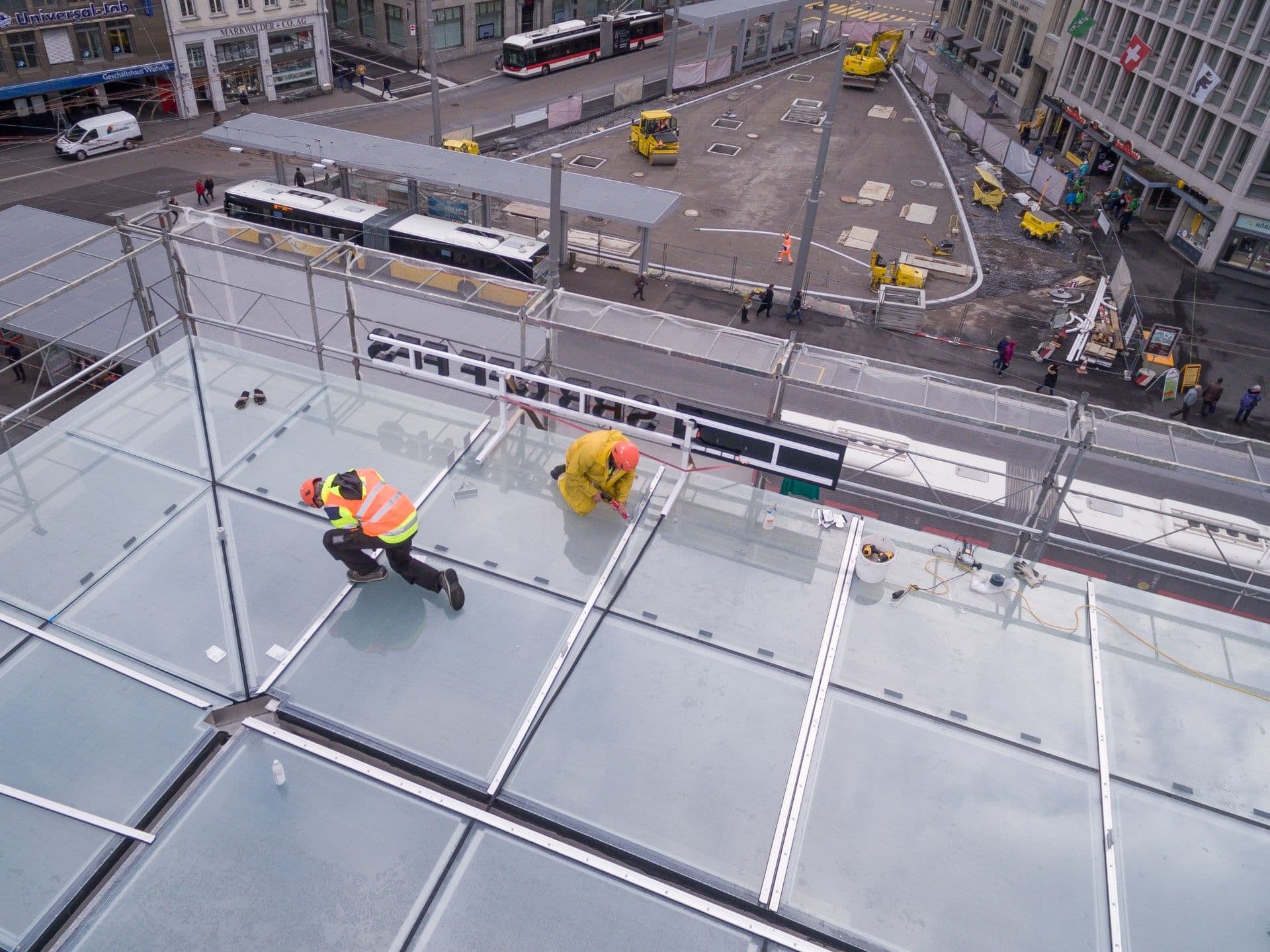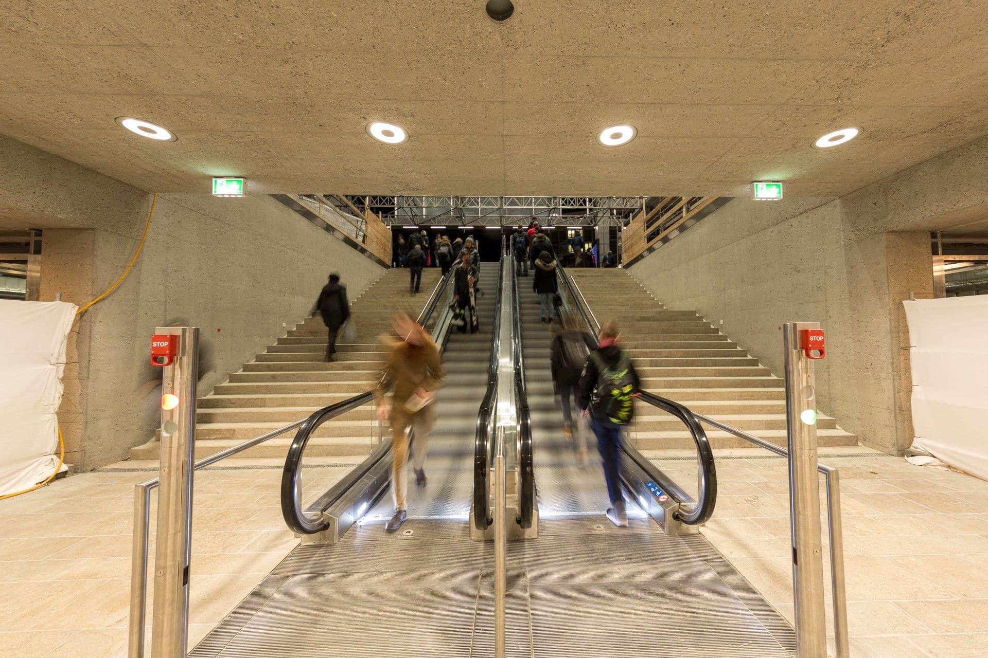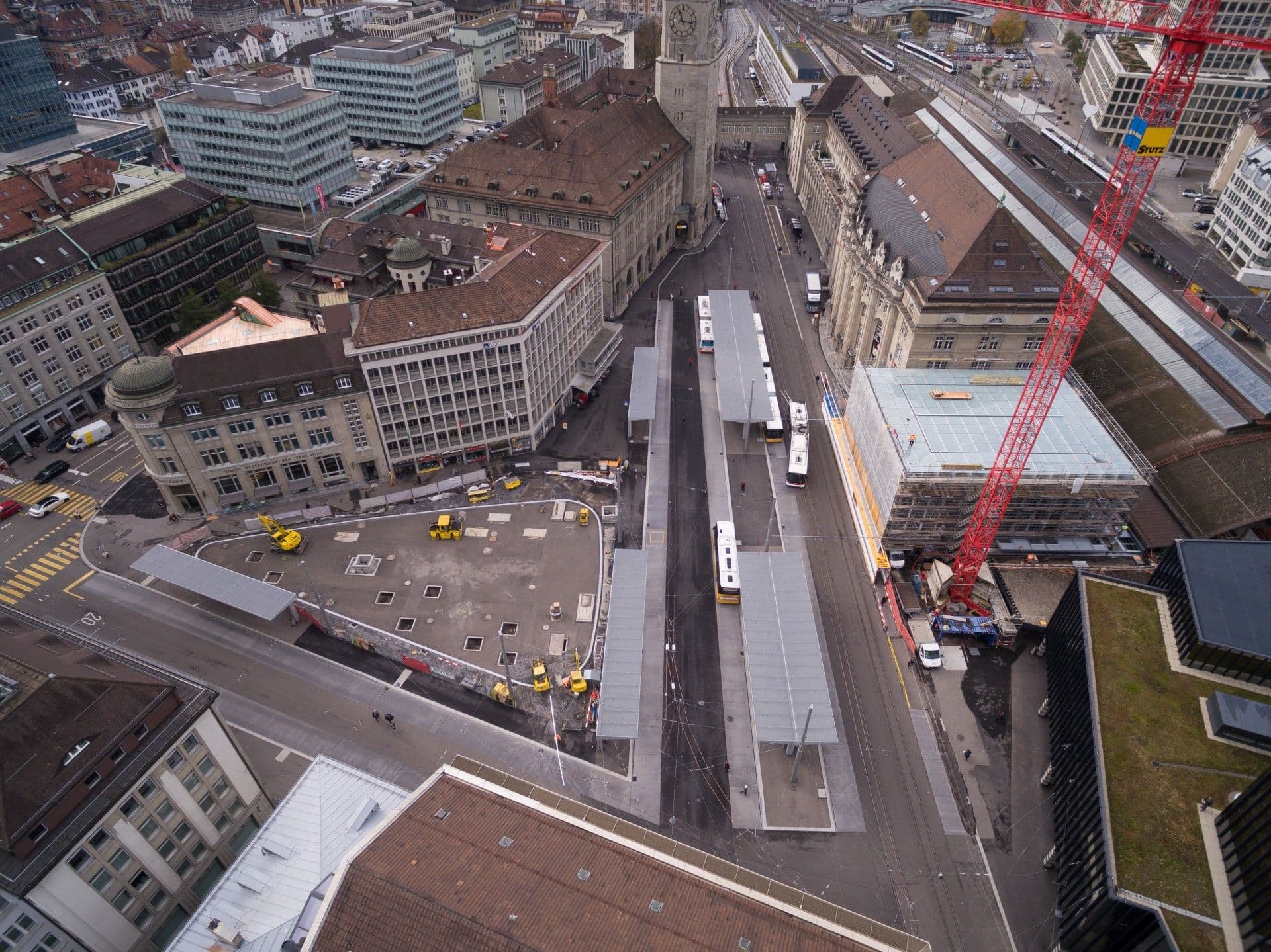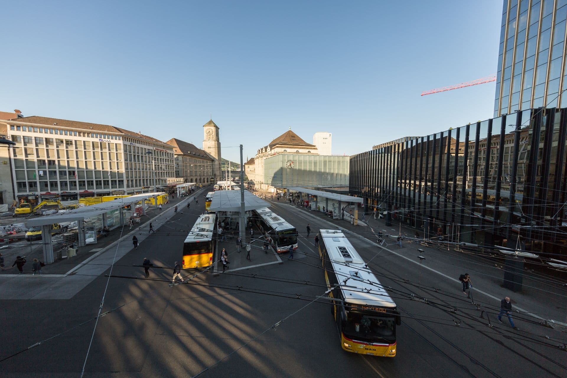Both Bahnhofplatz square and parts of St. Gallen station, in particular the subways and platform accessways, were in poor condition at the start of the millennium. Comprehensive renovation of Bahnhofplatz and the pedestrian subways was therefore urgent. The city of St. Gallen and Swiss Federal Railways (SBB) decided to jointly implement the ‘St. Gallen railway station and Bahnhofplatz (BBSG)’ project. After around six years of planning and three years of implementation, the new station and Bahnhofplatz were opened in 2018. The project transformed St. Gallen station into an efficient public transport hub as well as an inviting square.