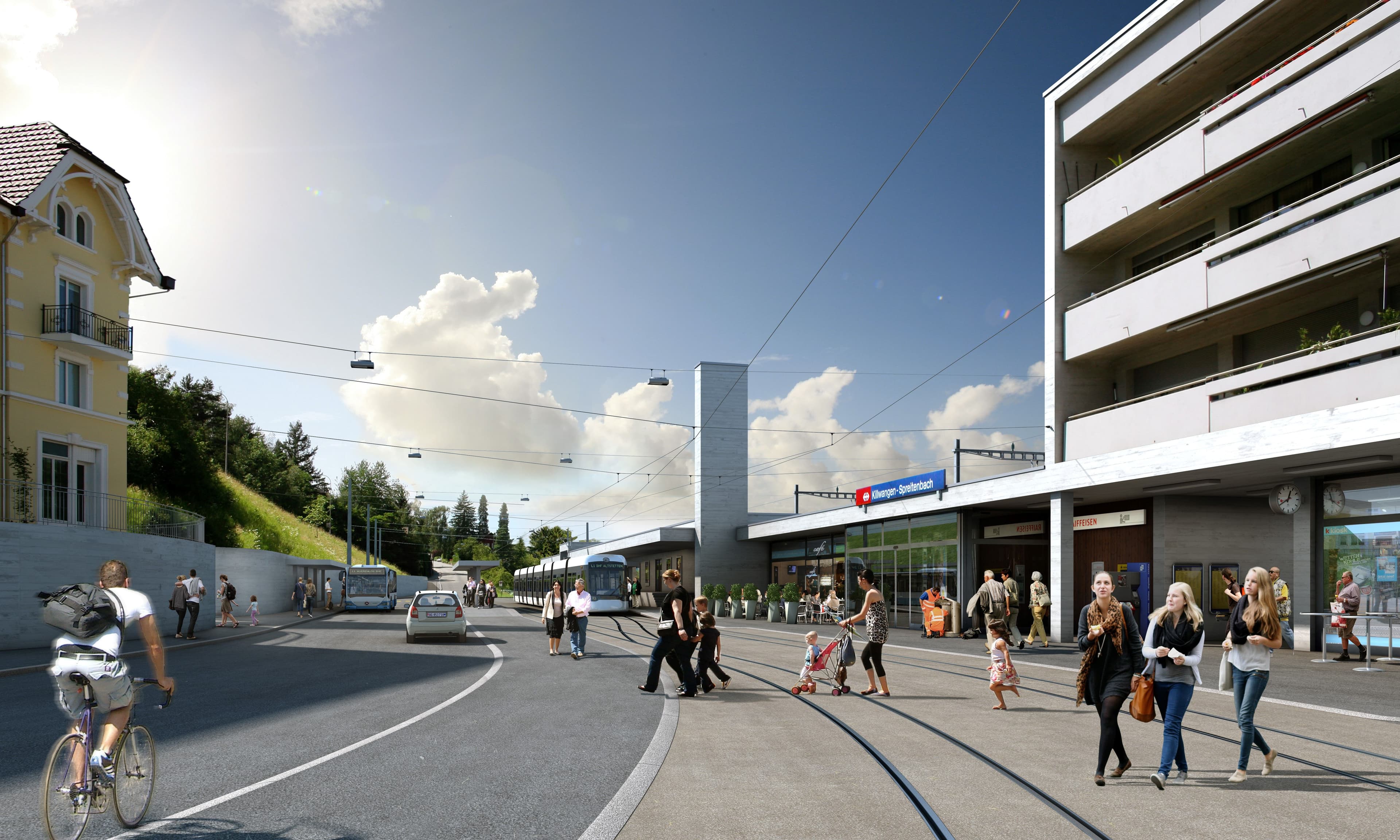 The Limmattalbahn is a modern urban network connecting the municipalities of Zurich, Schlieren, Urdorf, Dietikon, Spreitenbach and Killwangen. As a tram line, it is connected to the VBZ (Verkehrsbetriebe Zurich) and AVA (Aargau Verkehr AG) networks. It will handle a large amount of additional future traffic and thus relieve roads and town centres. It improves access to the region, runs on its own lane 90% of the time and can accommodate up to 250 people. The Limmattalbahn supports modernisation in the area, both on a very local level as well as for the immediate and wider surroundings.