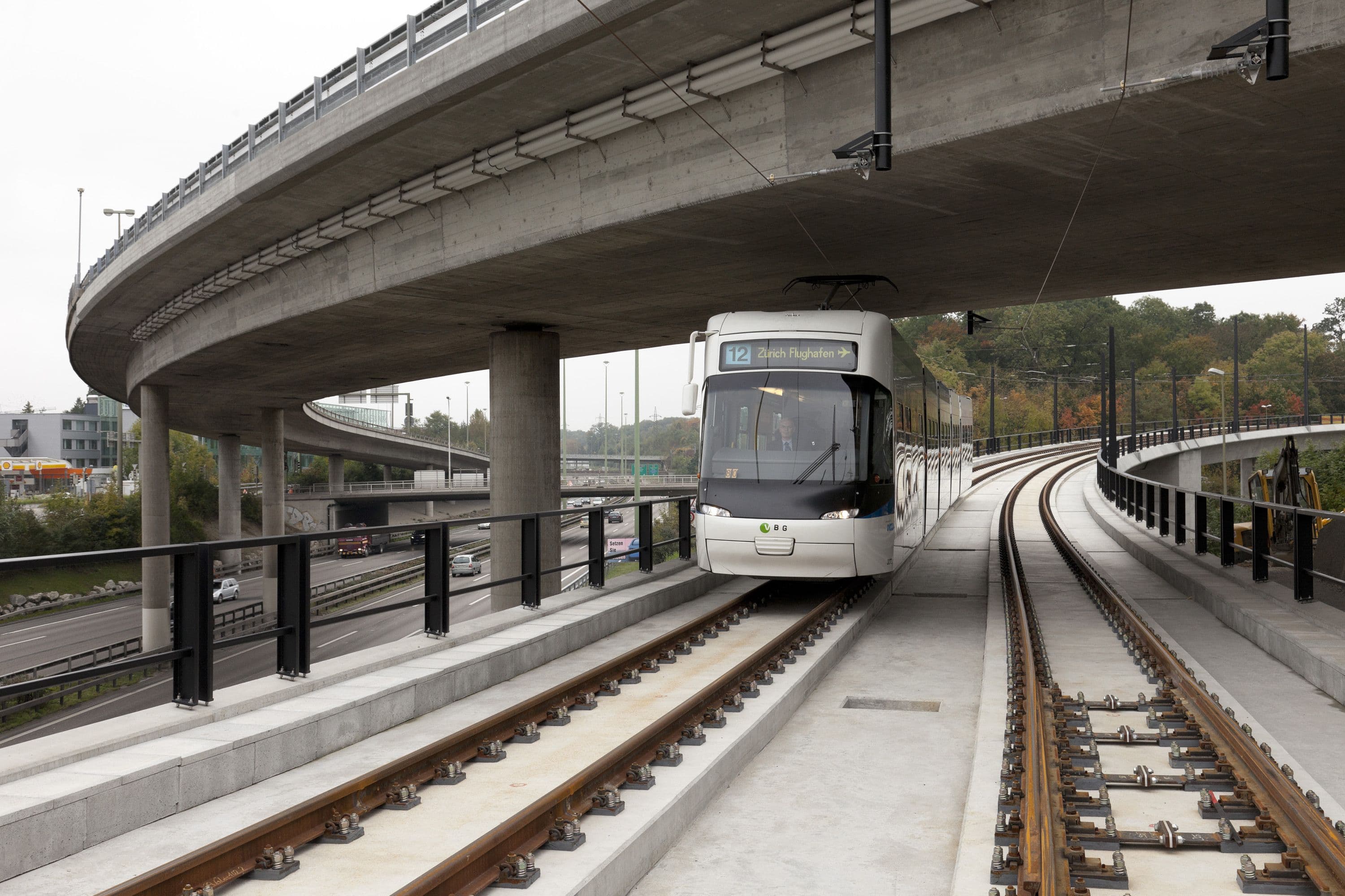 A local metre-gauge railway was constructed to connect the central Glatt valley to the existing tram network of the city of Zurich. In addition to the 13 km line length/600 V direct current railway, a new tunnel was constructed in the inner city area. This project included work in the following technical areas: permanent way, power supply, overhead contact line, communication systems, railway crossings including traffic lights and barriers, train stop infrastructure, railway safety systems in tunnels, tunnel safety installations, rescue and operational communication in tunnels, dynamic passenger information, ground gates for access to underground rectifier equipment, and low-voltage and earthing systems.