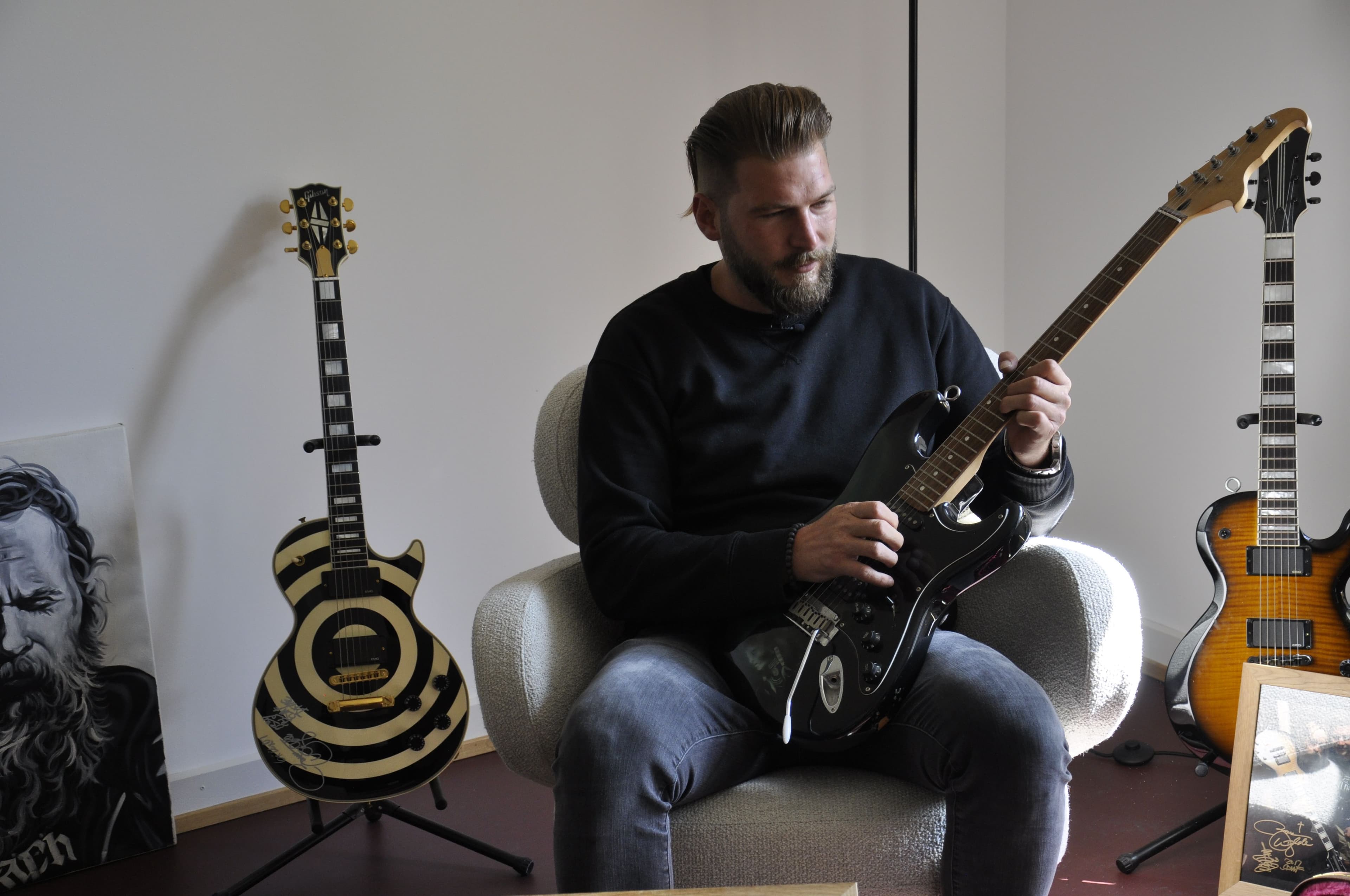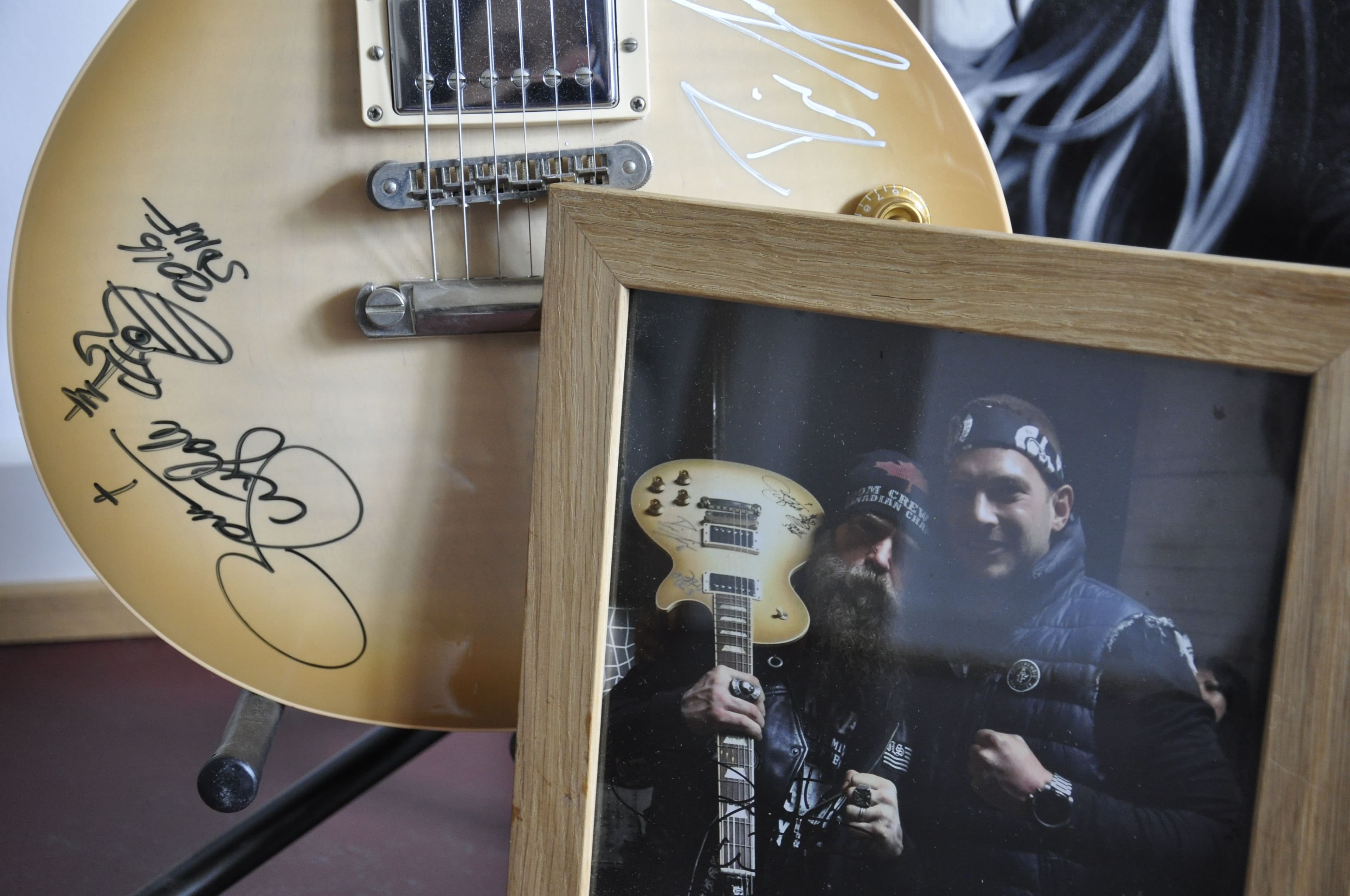 My passion for guitars is closely linked to a key situation in my life. Seven years ago, I was in a car crash, and I suffered severe injuries to my body and my head. I was even in a coma for a while. My girlfriend at the time put headphones on me and played me Zakk Wylde’s music over and over again. It was the music that was playing when I regained consciousness, and it also accompanied me through my difficult recovery period. His music touches me somewhere deep within. When I discovered one of his guitars on eBay, I knew right away that I had to have it! I told the guy who was selling it my story and how it connected me to the music of Zakk Wylde. And then something amazing happened. It turned out he was the manager of Zakk Wylde’s upcoming European tour! He was so touched that he invited me to a meet and greet with my idol, and after the concert he gave me a signed guitar.