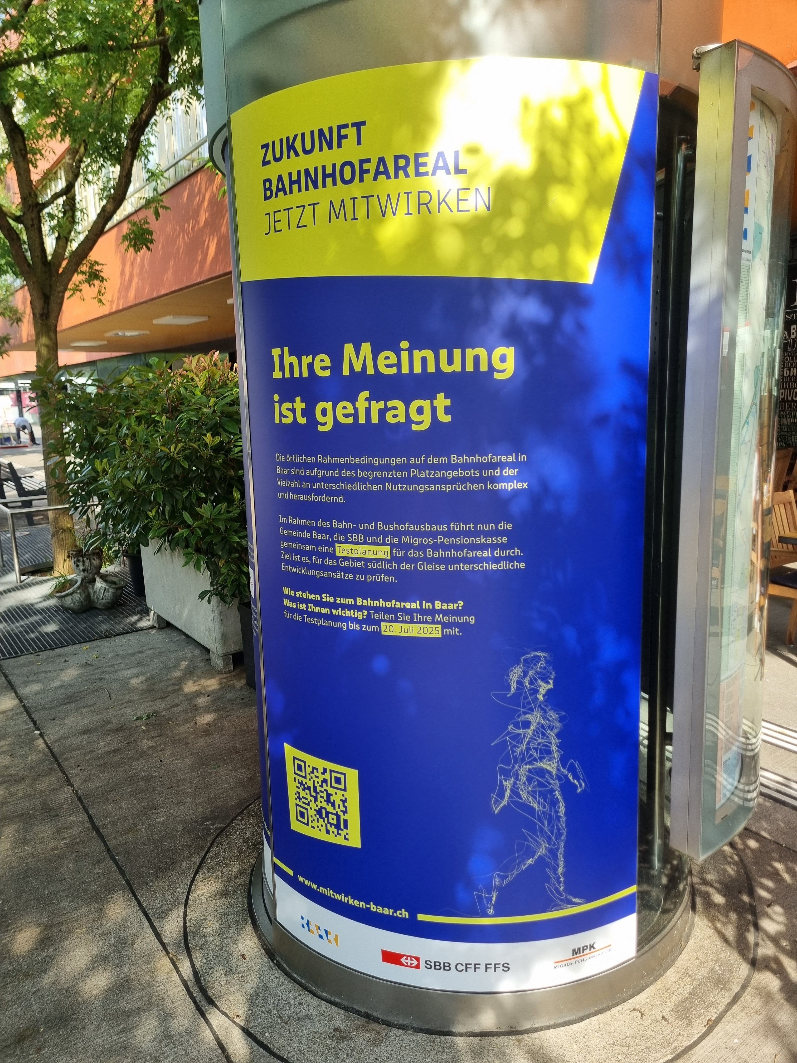La commune de Baar, les Chemins de fer fédéraux suisses (CFF) et la Caisse de pensions Migros (MPK) ont lancé le projet « Planification test du secteur de la gare de Baar ». L’objectif est d’examiner, de manière ouverte et sans parti pris, les possibilités de développement à long terme dans le secteur de la gare. Afin de recueillir les attentes et besoins des personnes directement concernées, une enquête en ligne a été lancée.