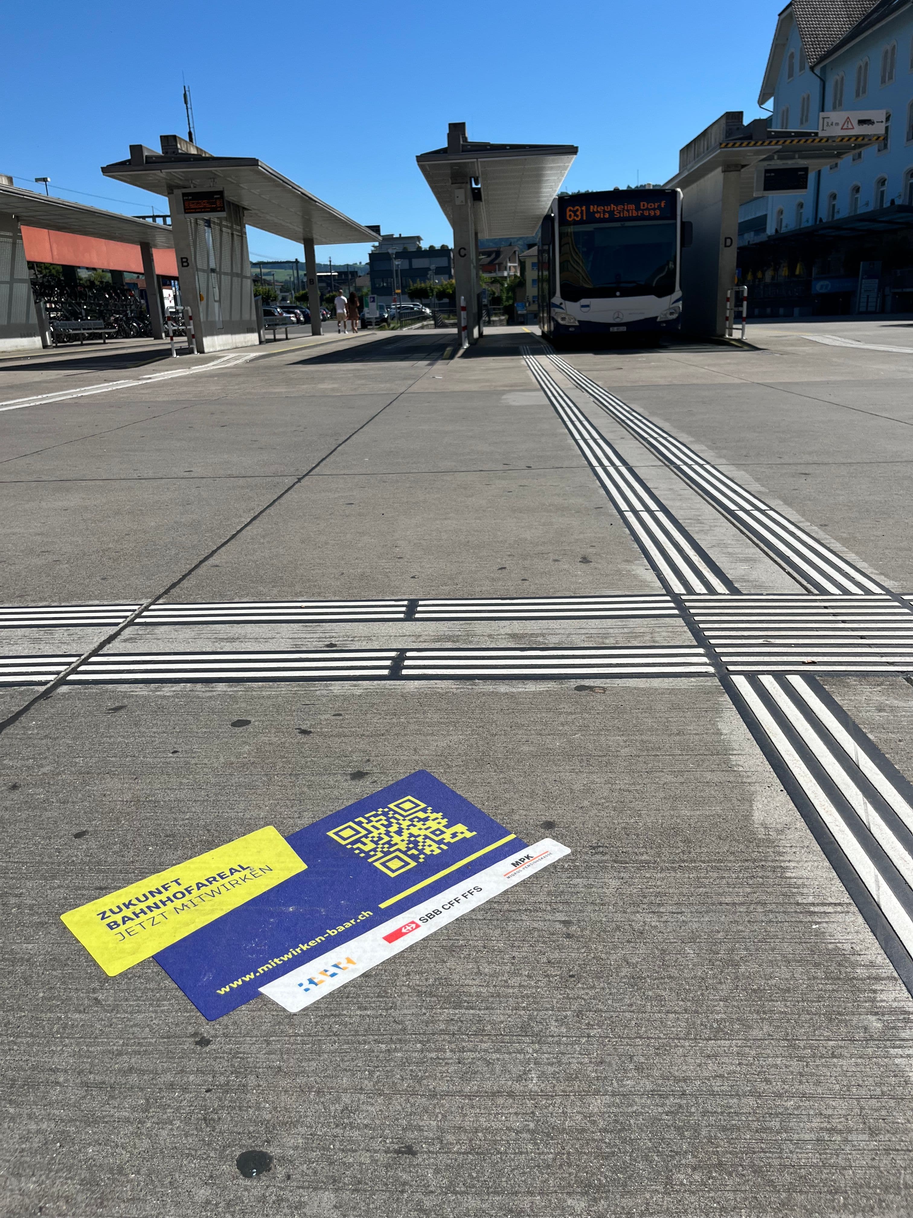 Pour attirer le plus grand nombre d’utilisateurs vers le questionnaire, TBF + Partner AG a élaboré une campagne d’information ciblée. Celle-ci comprenait notamment un manuel de marque (Brand Manual), la conception du questionnaire ainsi que la coordination du processus d’enquête. Cette démarche a été complétée par la création d’une affiche, de contenus destinés à la plateforme en ligne ainsi que par un communiqué de presse incluant une interview. Par ailleurs, TBF a mis en œuvre des actions de communication innovantes et créatives telles que des autocollants géants au sol bien visibles et une ancienne cabine téléphonique transformée en point d’information. Les résultats de l’enquête ont finalement été intégrés dans un rapport de participation.