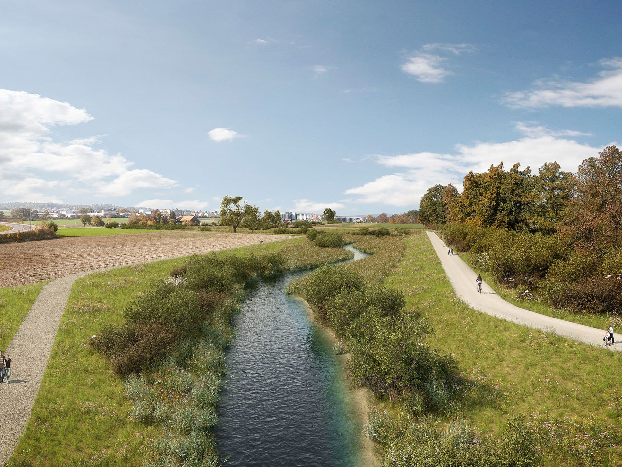 Le lit de la Glatt a été abaissé et canalisé il y a 150 ans et est maintenant renaturée et revalorisée écologiquement par la société Flughafen Zürich AG sur le tronçon entre Opfikon et Rümlang. Ce projet de revitalisation permettra de recréer un cours d'eau naturel. Ce projet est une mesure de compensation écologique pour les projets de construction de la Flughafen Zürich AG. Le périmètre du projet s’étend sur une longueur de 3 250 mètres. De nouveaux méandres, des zones riveraines plates et escarpées, une végétation riveraine, deux aires de repos, de nouveaux chemins et des prairies marécageuses seront aménagés. En outre, des mesures de protection seront mises en œuvre pour la protection contre les crues. TBF + Partner AG apporte son soutien en tant qu’assistance au maître d’ouvrage lors de la procédure de soumission, de la gestion, de la communication et du développement du projet, ainsi qu’en tant que direction générale des travaux pendant la phase de réalisation. Cela garantit l’interface entre le mandataire, les services cantonaux, les projets tiers et les équipes de planification est également assurée.