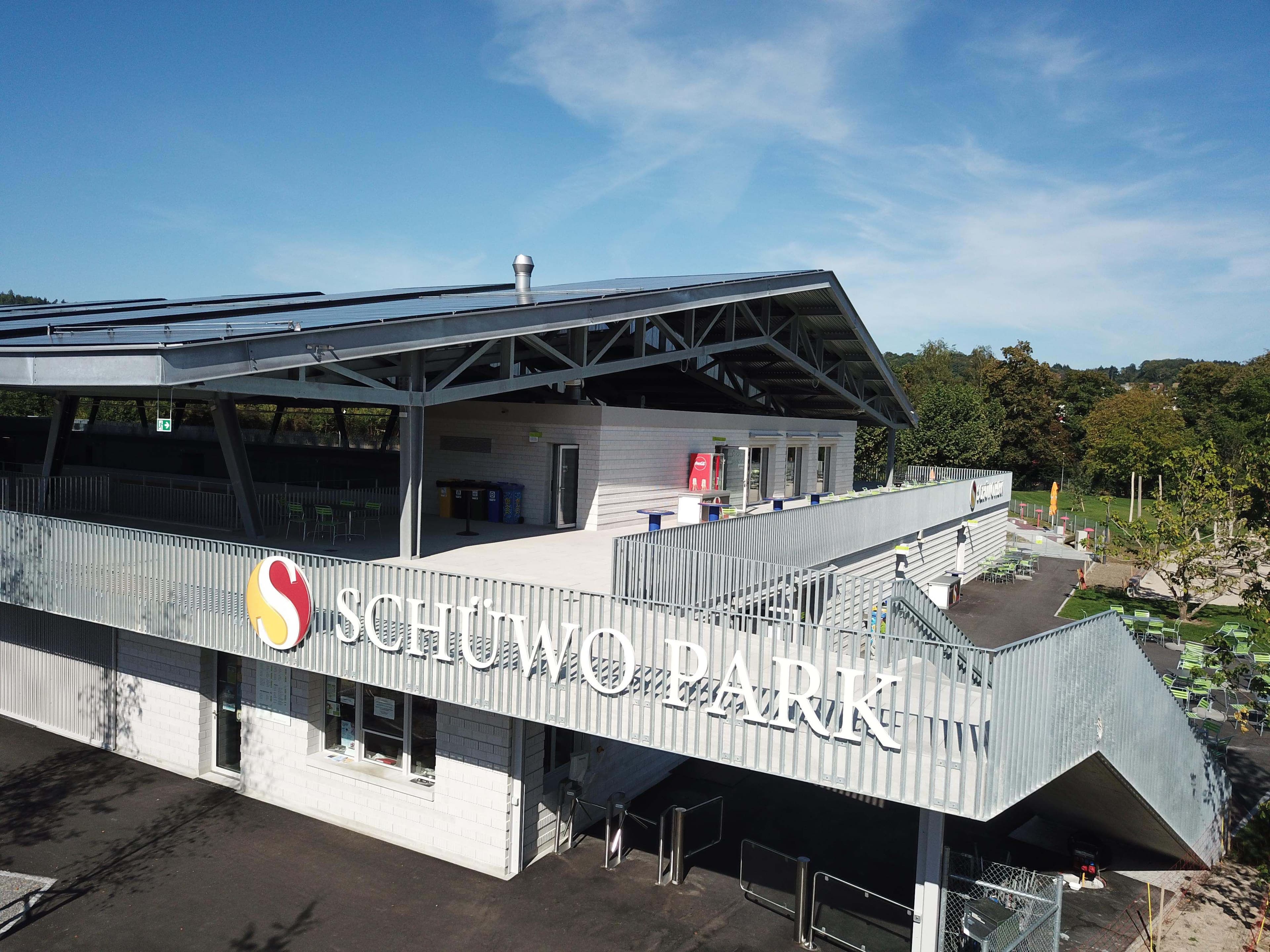 La piscine en plein air de Dolf Schnebli datant de 1967, classée monument historique, a été rénovée en douceur et la technologie a été entièrement renouvelée. Une nouvelle patinoire couverte a été construite à la place de la patinoire extérieure. Le parc sportif est complété par un terrain de beach-volley et de mini-golf et un Pump-Track. Ce magnifique parc est désormais ouvert au public toute l’année. Le parc sportif de Bünzmatt a reçu le prix international d’architecture pour la technologie solaire intégrée aux bâtiments (2020) et le prix solaire suisse (2019).